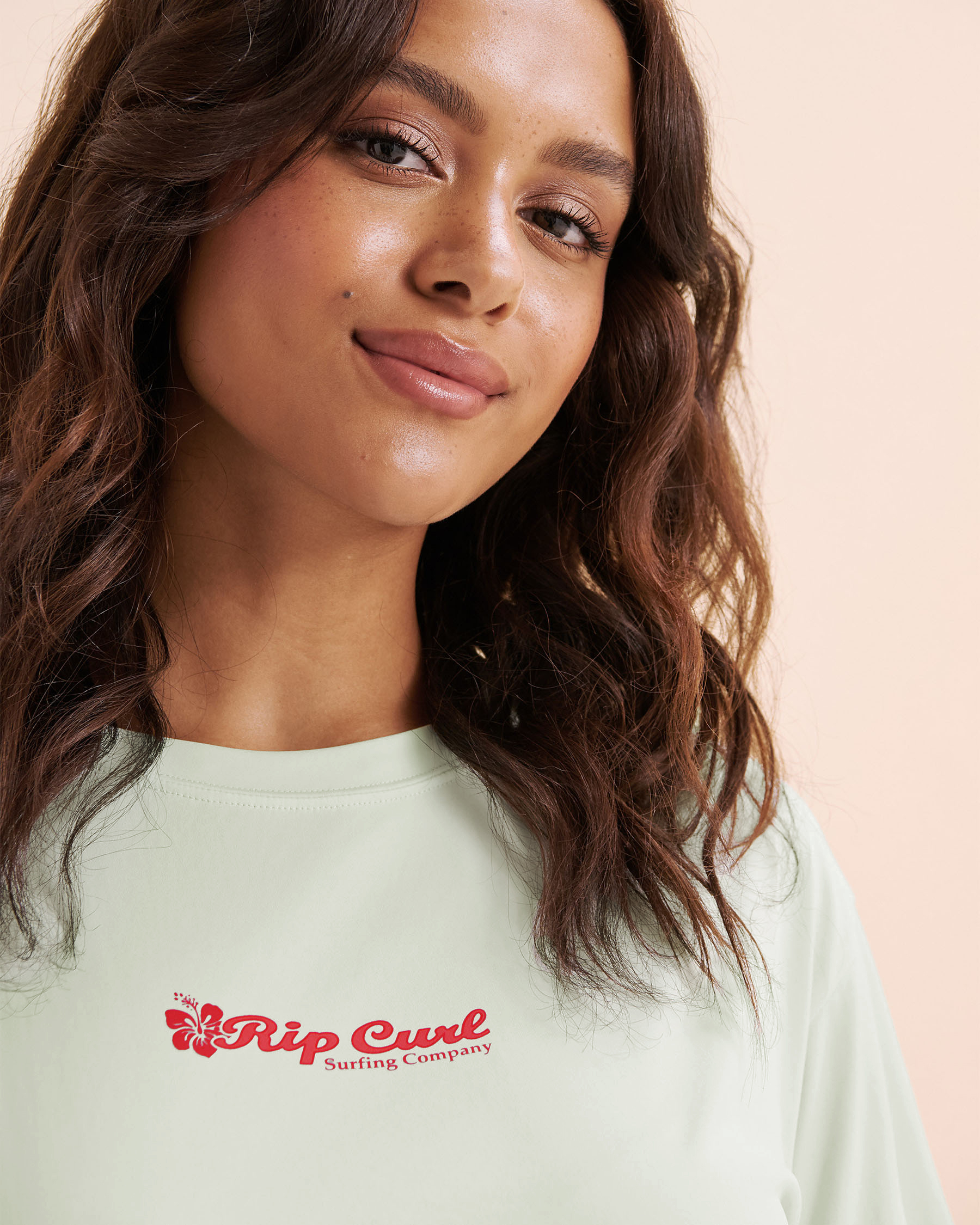 Want to enjoy surfing or the beach worry-free? Rip Curl’s Aloha Keepsakes rashguard is here to protect you! With its relaxed fit and short sleeves, it offers perfect freedom of movement. Its lightweight fabric with UPF 50 sun protection shields you from harmful rays. The refreshing aqua blue colour is brightened by the bold red Rip Curl logo, making this a summer essential.