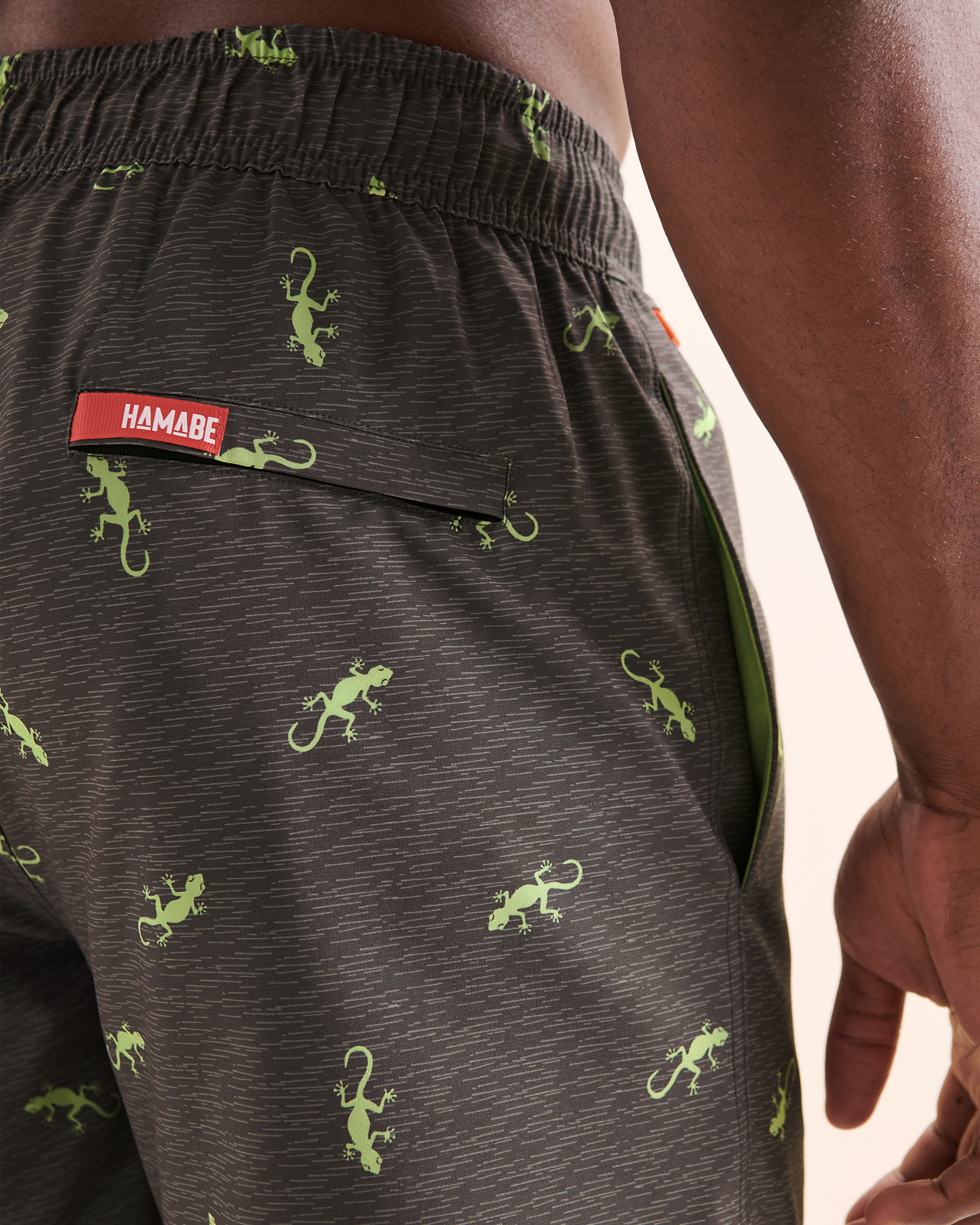 Make a statement with these grey volley shorts featuring a bold green gecko print, a piece full of character made to move with you, from the playing court to seaside happy hour. With a comfortable fit, inner lining and practical details, they’re a must-have for active days.