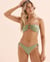 Unleash your inner mermaid with this bandeau bikini top, featuring a charming center ring and delicate ruching that flatters your silhouette. All in a soft tundra green hue, a subtle nod to wide open, lush landscapes.