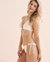 Dare to embrace ultimate seduction with the Santemare lace leaf triangle bikini top in beige, where every detail is crafted to enhance your silhouette. Soft and luminous, it’s adorned with refined lace featuring a delicate leaf pattern. The tie-neck straps, accented with double golden metal rings, add a subtle yet luxurious sparkle to your look, effortlessly elevating your beach style.