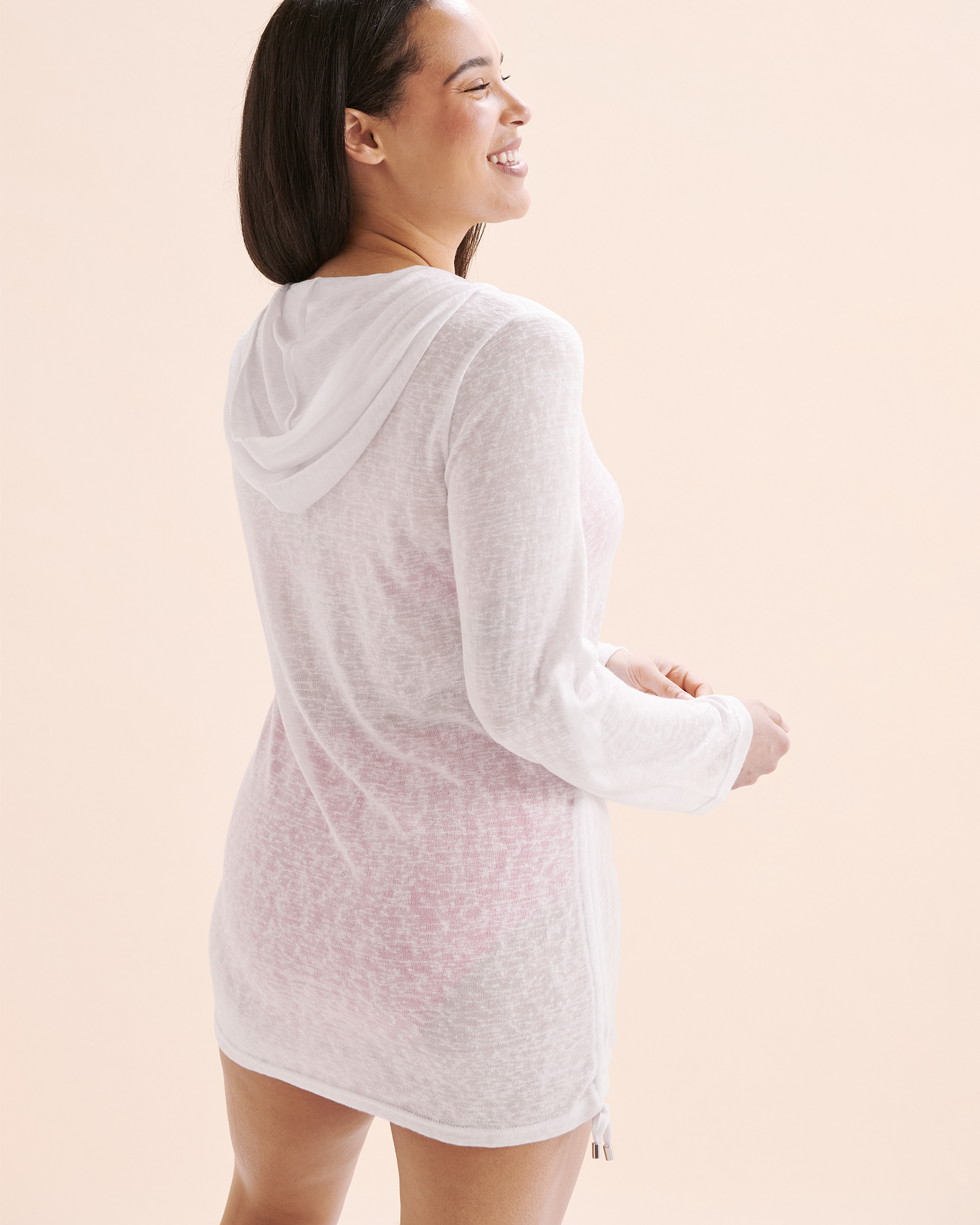 Eau de Sea’s hooded tunic embodies ultimate comfort. Add a relaxed touch to your wardrobe with this effortlessly stylish piece, featuring a cozy hood and long sleeves that can be easily rolled up with convenient button tabs, perfect for adjusting to your mood and style. The white buttoned neckline adds a delicate contrast against the tunic’s soft, lightweight fabric. This tunic feels wonderfully smooth on the skin, making it ideal for all seasons. Its white hue pairs effortlessly with any outfit, while the modern cut flows with your day, whether you're heading out in the city or enjoying a quiet moment at home.