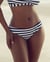 Melanie, the bottom where 90s vibes meet modern style. A touch retro, this low-rise bikini bottom with a clean-finish front and textured black-and-white striped fabric brings that little graphic twist we just can’t resist.