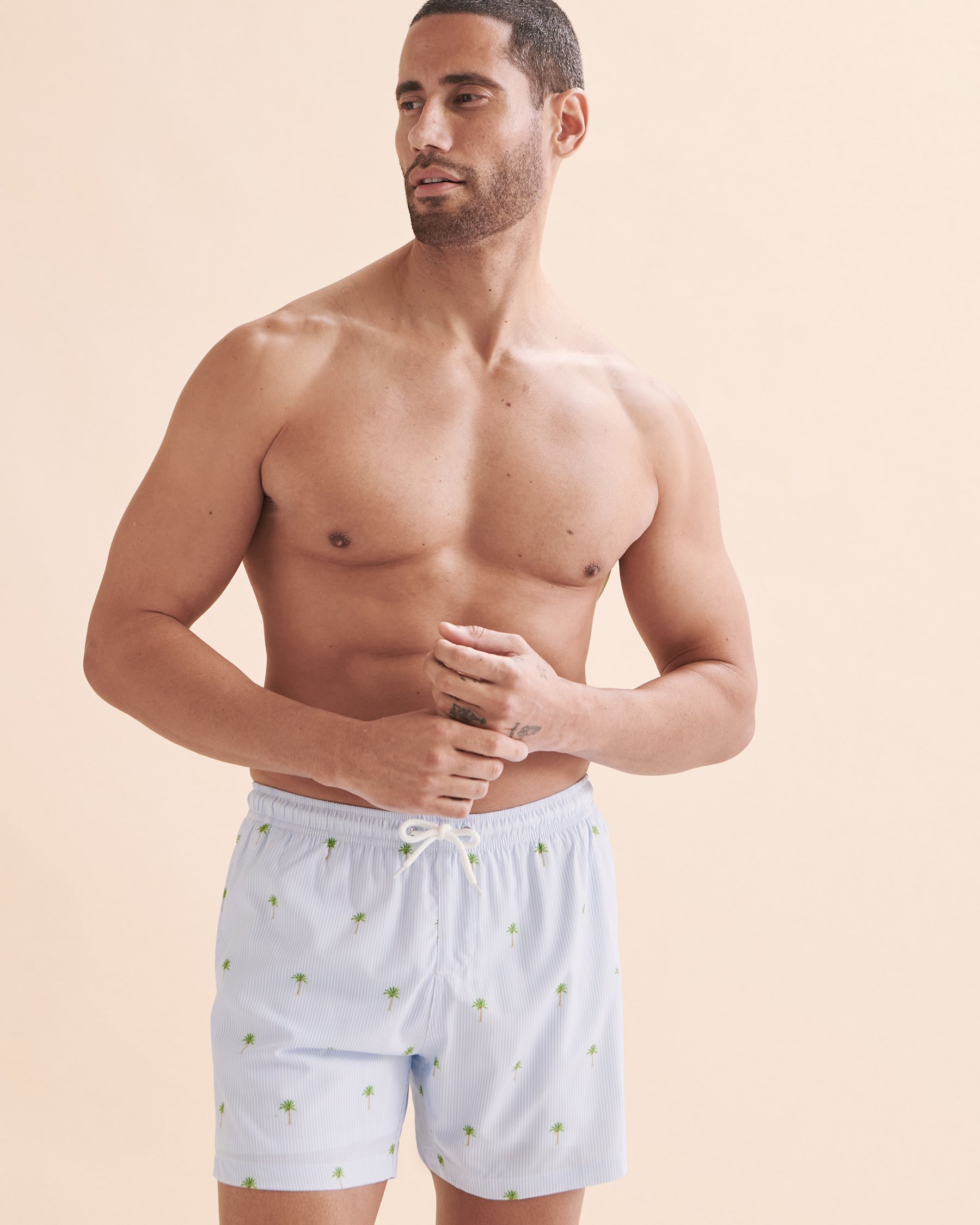 Start your vacation off right with the Bermies Palm Stripes Volley Swimsuit. This Palm patterned swimsuit is made of quick-dry 4-way stretch fabric that also provides UV protection. Its mesh lining and elastic waistband ensure all-day comfort. Made from recycled fibres this swimsuit is an environmentally friendly choice!