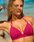 This push-up triangle bikini top is your new beachside favorite, thanks to its stunning neckline. Featuring molded push-up cups and a fixed band, it offers flattering support. Delicate ruching at the bust adds a touch of texture, while the ties at the neck and back, finished with gold rings, create an ultra-feminine look. Dressed in an exotic floral print of cherry pink and blue, this triangle top captures the spirit of Costa Del Ray, a true escape you can wear.
