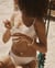 A touch of retro, a pinch of fun: this mid-rise bikini bottom ticks all the boxes for a carefree vacation. The cheeky back cut gives just the right amount of wow keeping things comfortable, while the open side ties let your skin breathe. The real standout? The pom-pom detail at the waist, unexpected but totally adorable, all in a textured creamy white.