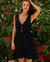This little black dress is anything but basic. With its deep V-neckline and front knot revealing a subtle cut-out, it flirts with sensuality while keeping things effortlessly relaxed. The gathered waist gently highlights your silhouette. A dress made for dancing, laughing, loving, and shining.