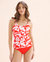 The Costa Del Ray tankini top, with its red and white leaf print, evokes the warmth of an Italian summer. Its delicate front ruching and built-in bra provide subtle support, while the adjustable straps can be worn two ways.