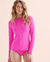 Get ready to surf under the sun with the Sun Seeker rashguard top! This long-sleeve, fitted style offers both protection and comfort. Its vibrant dragon fruit pink colour adds a splash of brightness to your seaside adventures. With UV 50 protection, it shields you from harmful sun rays, while its breathable fabric ensures long-lasting durability. This rashguard pairs perfectly with a classic bikini bottom for a functional and stylish look. Stay protected while fully enjoying your sunny days!