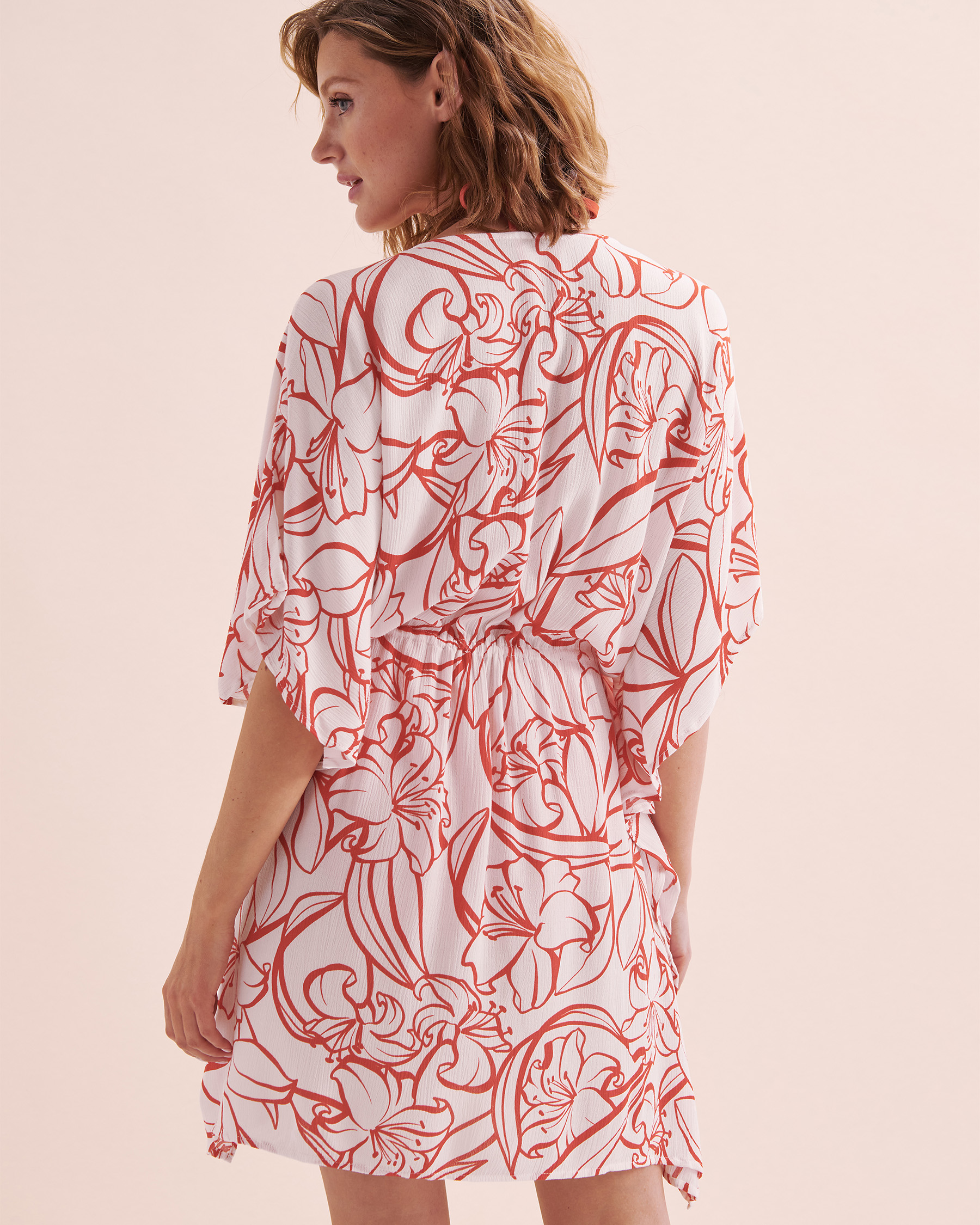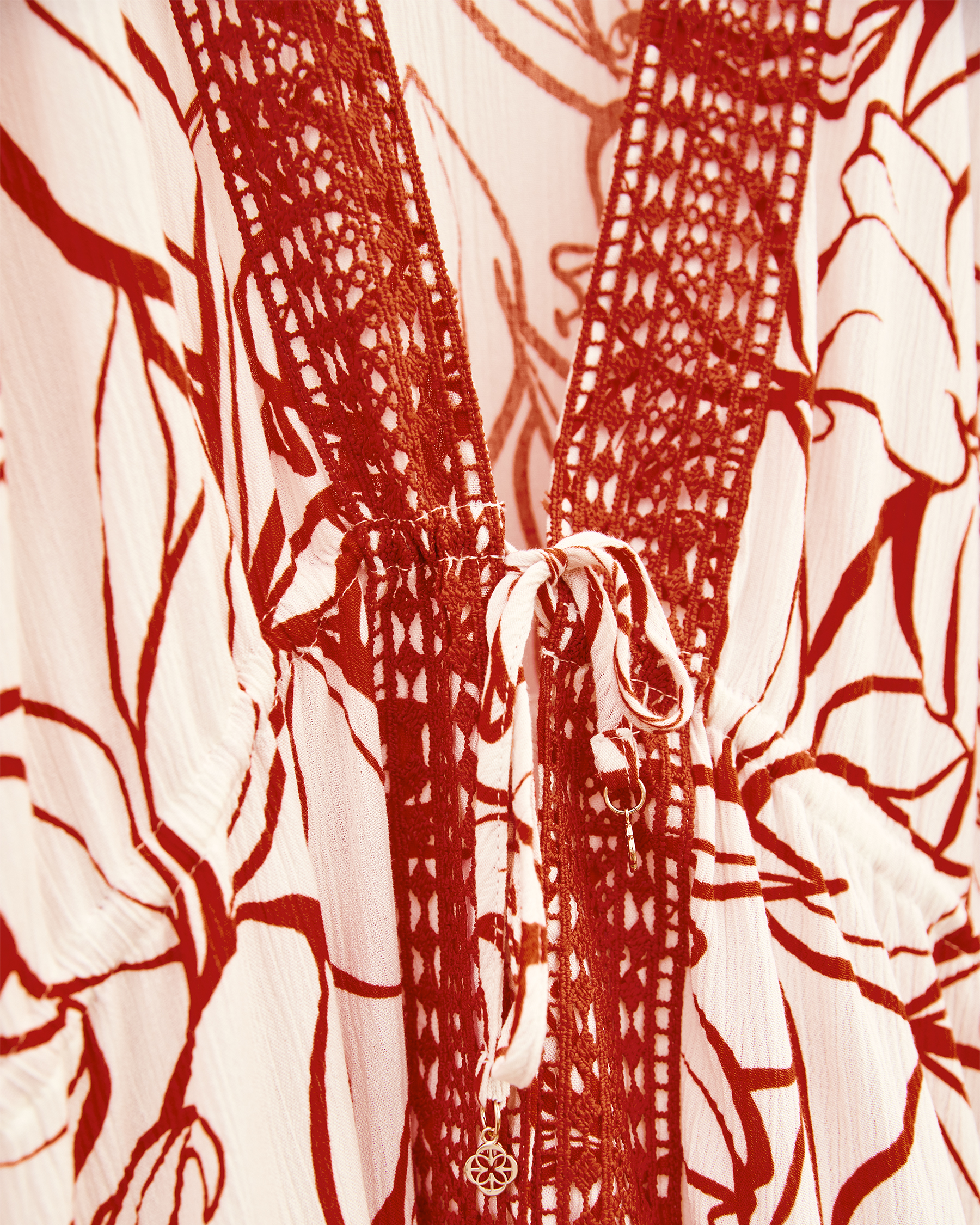 Our crochet-detailed caftan is the ultimate blend of chic and casual. The Portofino Caftan by Turquoise Couture embodies timeless elegance and refinement. This short-sleeve style is adorned with a crocheted band detail on the front, adding a sophisticated touch to its design. The adjustable waist drawstring allows for a perfectly tailored fit. Designed to go beyond fleeting trends, it offers an elegant silhouette for your seaside moments. Style tip: This caftan features a delicate white and red print, making it the ideal cover-up for a swimsuit in similar shades. Slip it on over your swimsuit or pair it with a camisole for a naturally elegant look.