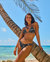 The Tropical Cabo ribbed triangle bikini top is the piece you've been waiting for. This wire-free, ultra-comfortable style lets you move freely and enjoy the sun at 100%. Its black ribbed fabric with a white tropical pattern and black-and-white striped outlines is a true nod to modern style. The ties at the back and around the neck allow for a fully customizable look.