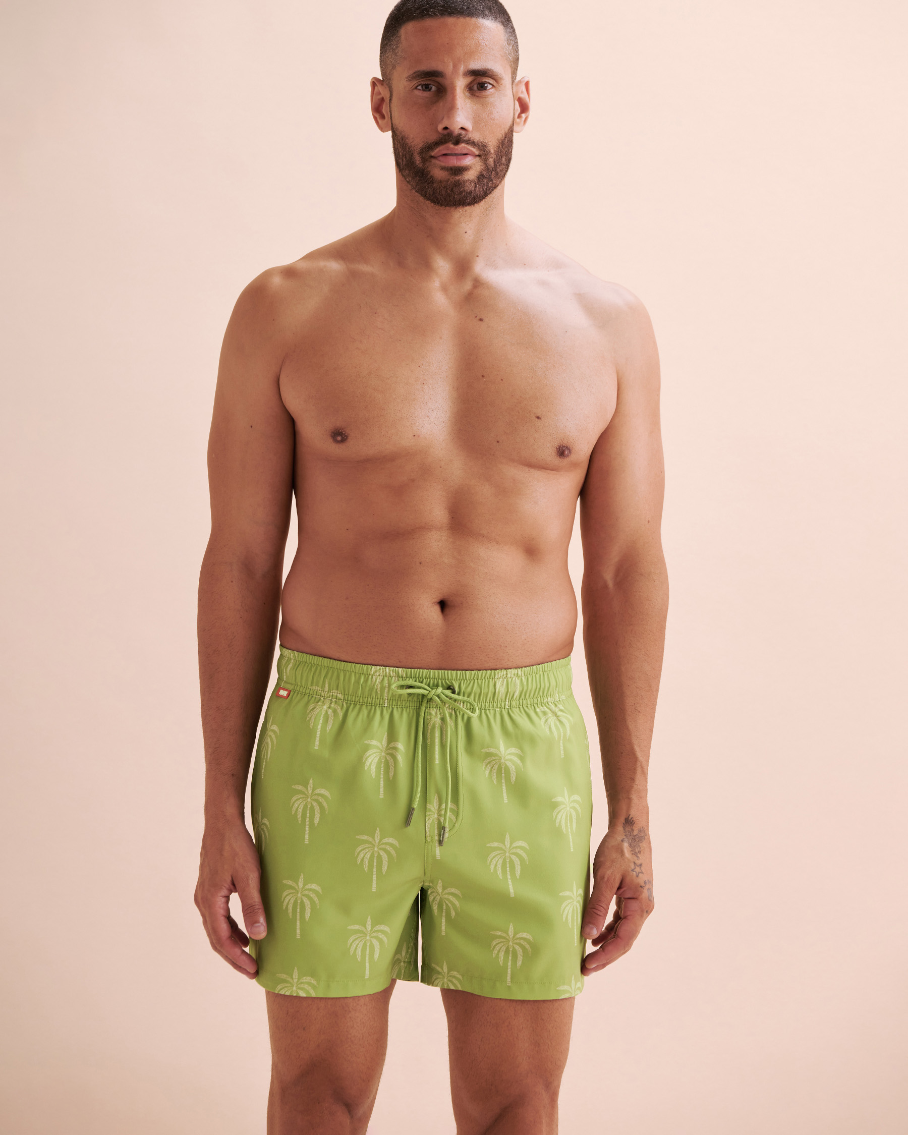 Gear up for your beach adventures with this dynamic volley swimsuit! The Volley Swimming Short offers the perfect blend of style and performance! Whether you're hitting the beach for volleyball or enjoying water sports this short ensures freedom of movement with its adjustable waist cord and quick-dry material. Featuring side and back pockets a 4.5" inseam and a comfortable inside mesh lining it’s designed for both function and style. The tropical green palm tree print adds a refreshing touch,bringing a laid-back beach-ready vibe to your summer wardrobe.
