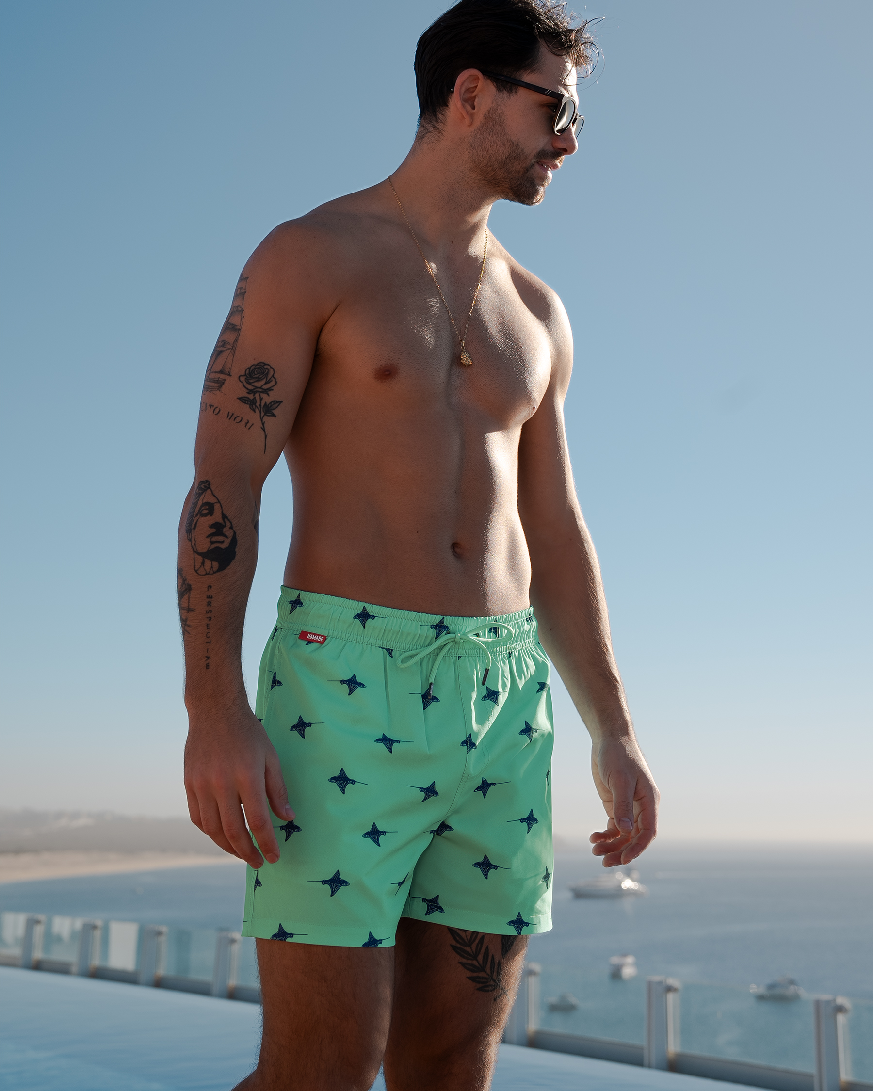With its dynamic design and white stingray pattern, this swimsuit embodies the curious and sociable spirit of this mythical animal. Its mesh lining adds an extra touch of comfort, so you’re ready for anything while staying cool and relaxed.