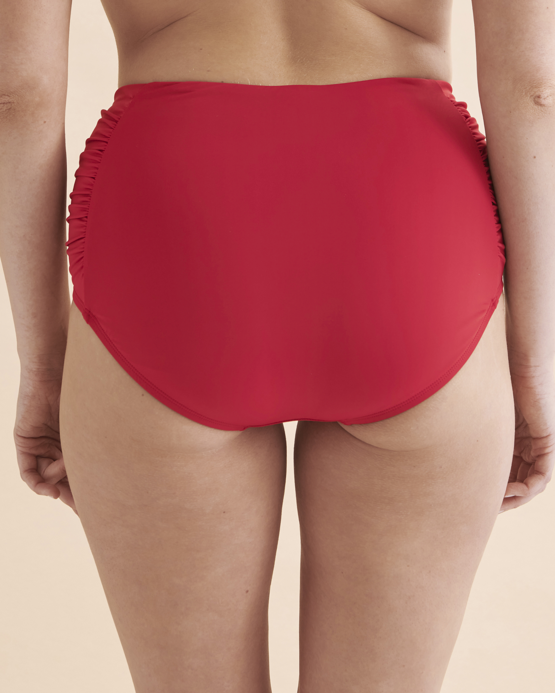 Bas de bikini taille haute plissé sur les côtés Solid