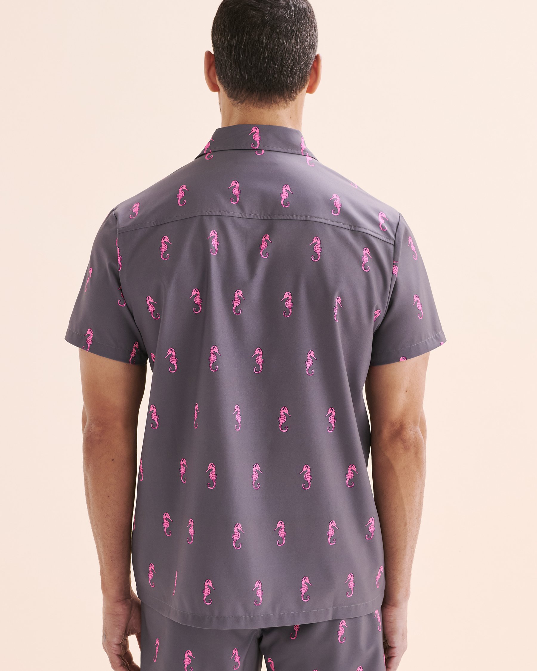 Envie d’un look cool et décontracté qui ne manque pas de dynamisme? Cette chemise gris d'Hamabe est la pièce parfaite pour ajouter une dose de bonne humeur à ta garde-robe ! Avec ses manches courtes légères, son encolure boutonnée, elle s’adapte à toutes tes envies. On fond totalement pour son motif hippocampe rose qui apporte une touche ludique, la signature Hamabe qui fait toute la différence.