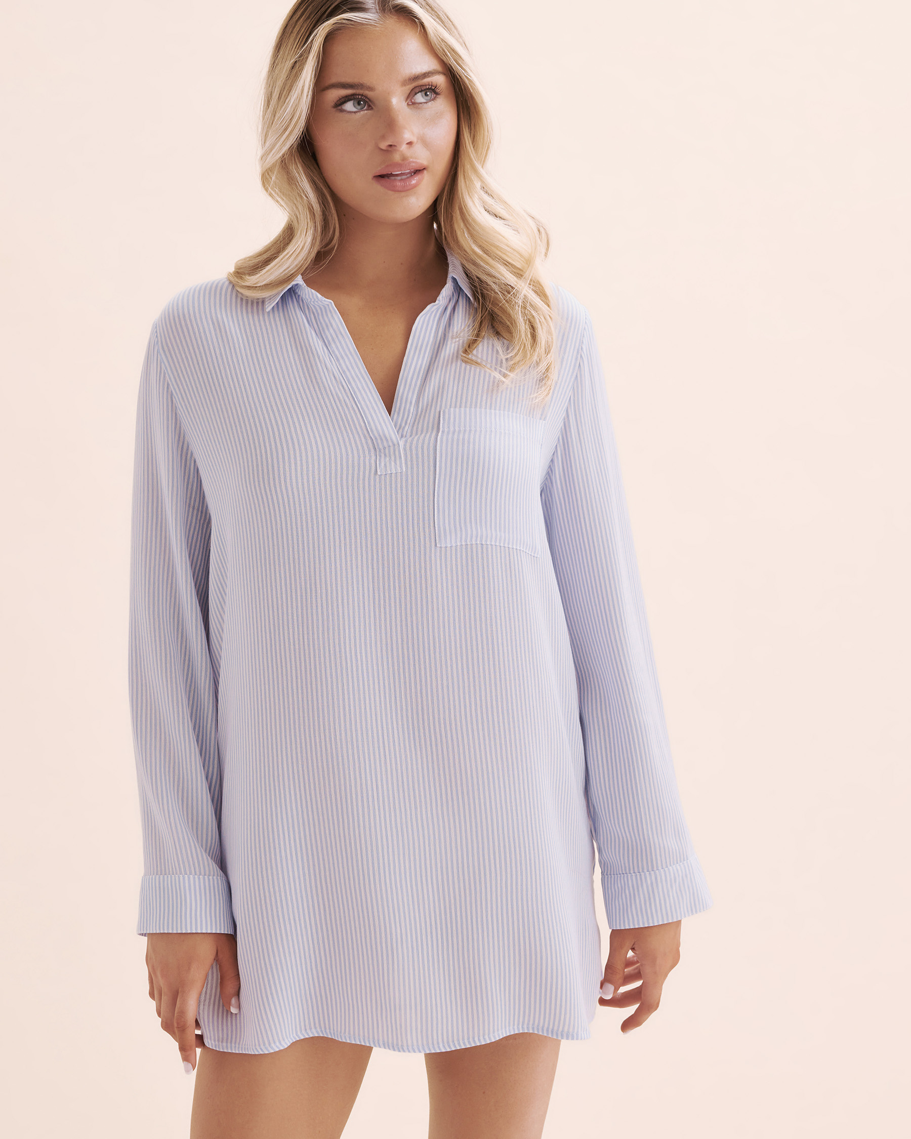 Découvrez la chemise en gaze Tropik, un incontournable de votre garde-robe, qui allie confort et élégance. Elle offre une douceur incomparable et une légèreté parfaite pour toutes les occasions. Ses manches longues à revers sont agrémentées de boutons blancs, ajoutant une touche raffinée et moderne. L’encolure boutonnée et la fermeture à l'avant assurent une coupe ajustée, tandis que la poche sur le devant ajoute une note pratique et stylée. Le motif à rayures dans des tons bleu et blanc évoque une allure fraîche et dynamique. Avec une longueur de 32'' et une silhouette fluide, cette chemise s’adapte à toutes vos envies de style, du quotidien au plus habillé.