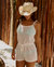 Laissez-vous envoûter par cette combinaison en crochet blanche. Sans manches et facile à enfiler, elle dévoile subtilement la peau grâce à son tissu crocheté transparent, tout en gardant une décontractée. Sa ceinture élastique vient cintrer la taille.