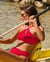 Ce haut de bikini bralette texturé à smocks est ta nouvelle arme secrète pour un look chic. Son col montant sophistiqué, associé à un détail d'ouverture goutte d'eau sur le devant donne une allure élégante. La fermeture à nouer dans le dos te permet de l’ajuster parfaitement à ta silhouette pour un effet ultra-féminin. Son tissu texturé garantit une sensation agréable tout au long de la journée et sa couleur rouge donne un éclat irrésistible qui capte tous les regards.