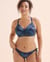 Armatures, bonnets moulés et effet cache-coeur à l'avant sont réunis pour offrir un maintien impeccable, spécialement conçu pour les poitrines généreuses. Ce haut de bikini plongeant pour les bonnet D, saura mettre en valeur vos jolies courbes. Dans un motif de palmiers bleu et vert, il vous rappellera les plus beaux horizons tropicaux.