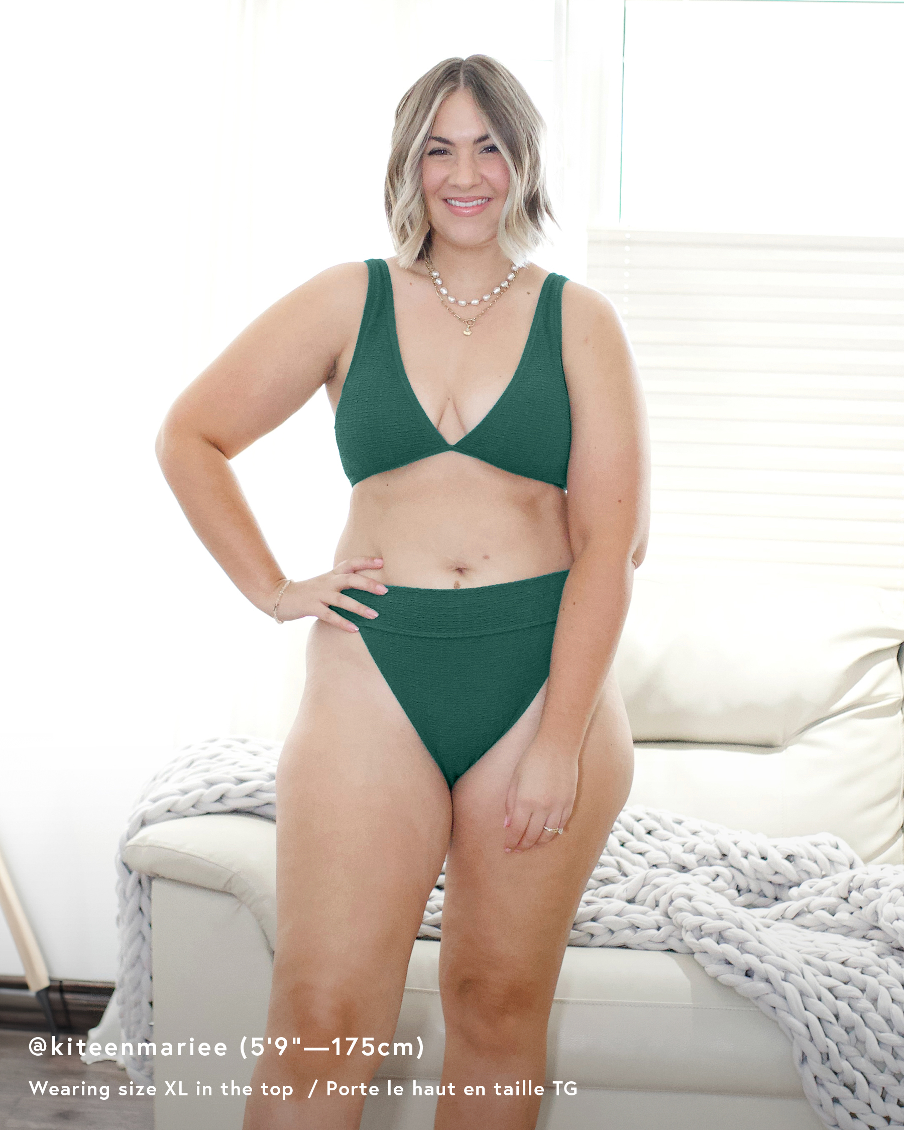 Plongez dans le soleil avec le haut de bikini triangle Ava So Dazed de Billabong. Ce haut de bikini émeraude a une coupe sans armature, avec des bonnets amovibles et des bretelles fixes. Son encolure plongeant en V vous gardera confiante toute la journée. Ce haut fabriqué à partir de fibres recyclées est fait pour vous!