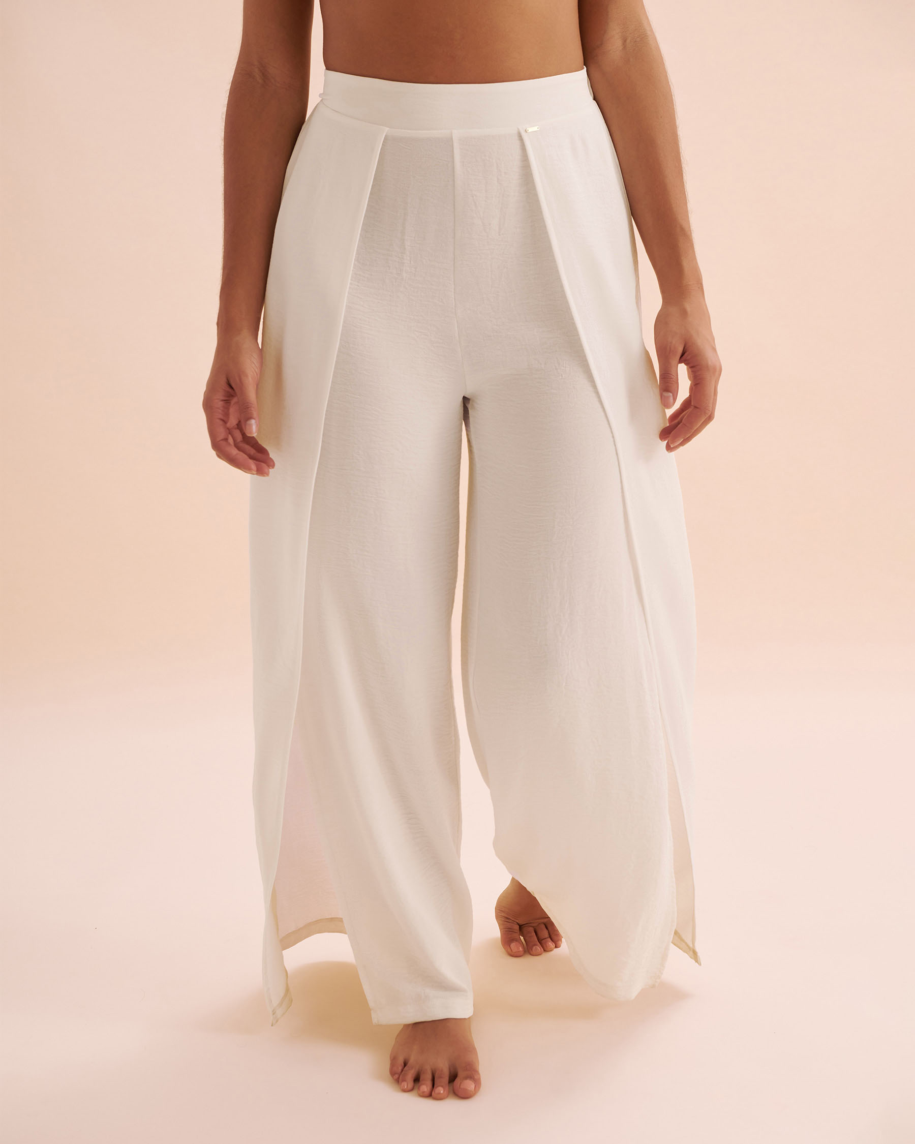 Rentrez à l'hôtel avec style après une journée de relaxation au bord de la piscine dans ce pantalon fluide.Le pantalon de plage jambe large est l’option idéale pour ajouter confort et élégance à vos moments de détente au bord de la plage ou de la piscine. Avec sa coupe à jambes larges et ses fentes sur les côtés, ce pantalon offre une allure décontractée et fluide, parfaite pour les journées ensoleillées. Il est léger et agréable à porter, vous offrant toute la liberté de mouvement. Son coloris blanc cassé, à la fois intemporel et sophistiqué, se marie facilement avec vos tenues de plage, pour un look chic et raffiné. Ce cover-up est un incontournable pour compléter vos escapades estivales.