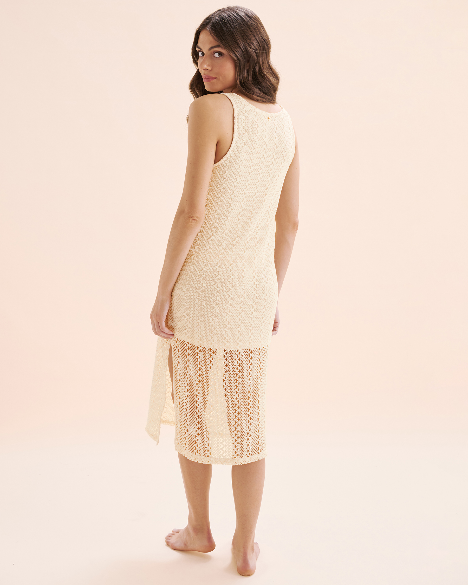 Cette robe longue en crochet est un véritable hymne à la féminité. Sa doublure en jersey douce assure une certaine opacité, tandis que les fentes latérales permettent de vous déplacer sans contrainte. La transparence délicate au bas de la robe ajoute une touche aérienne. Dans un ton naturel de beige, cette pièce vous invite à embrasser une allure lumineuse.