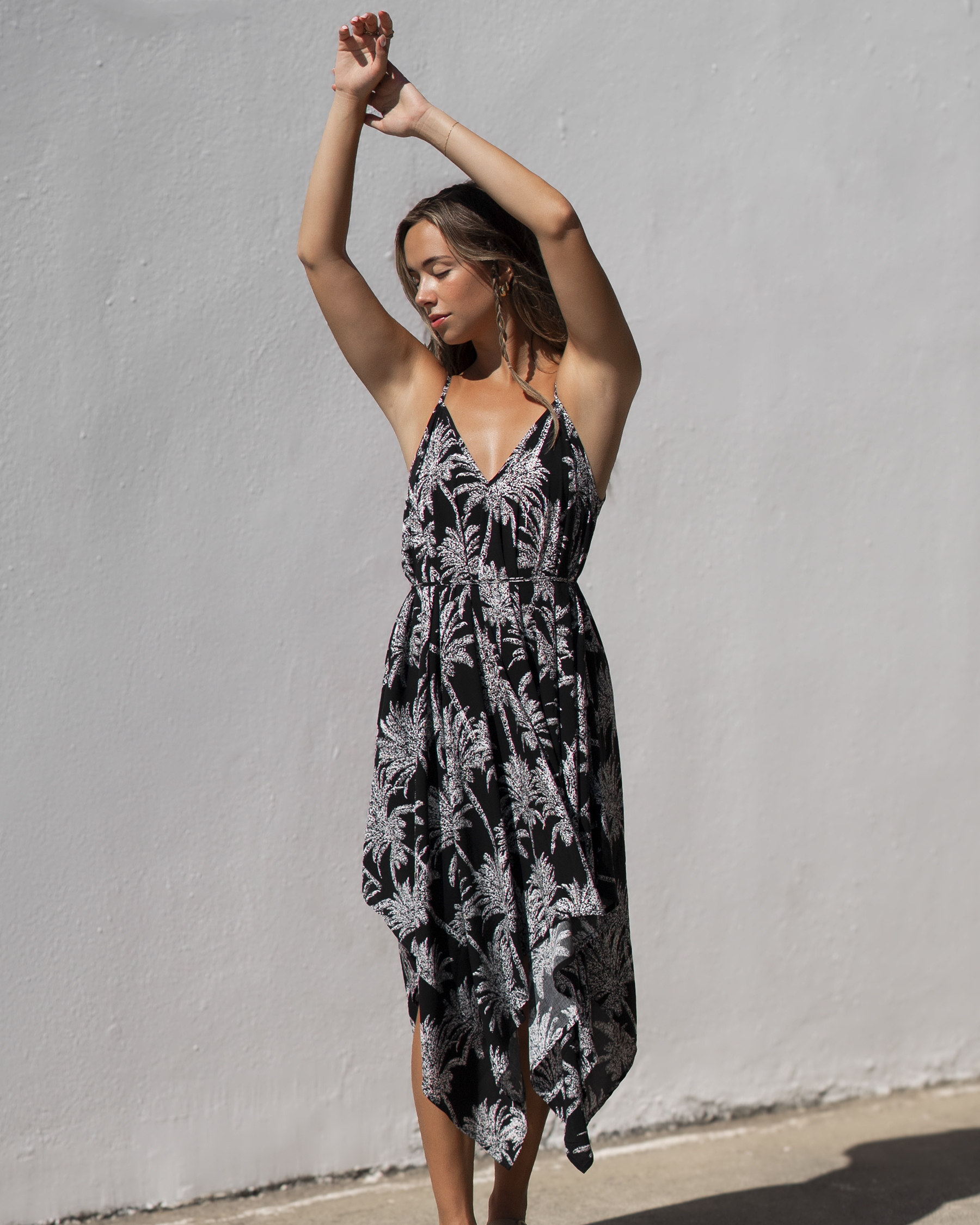Robe longue sans manches palmiers