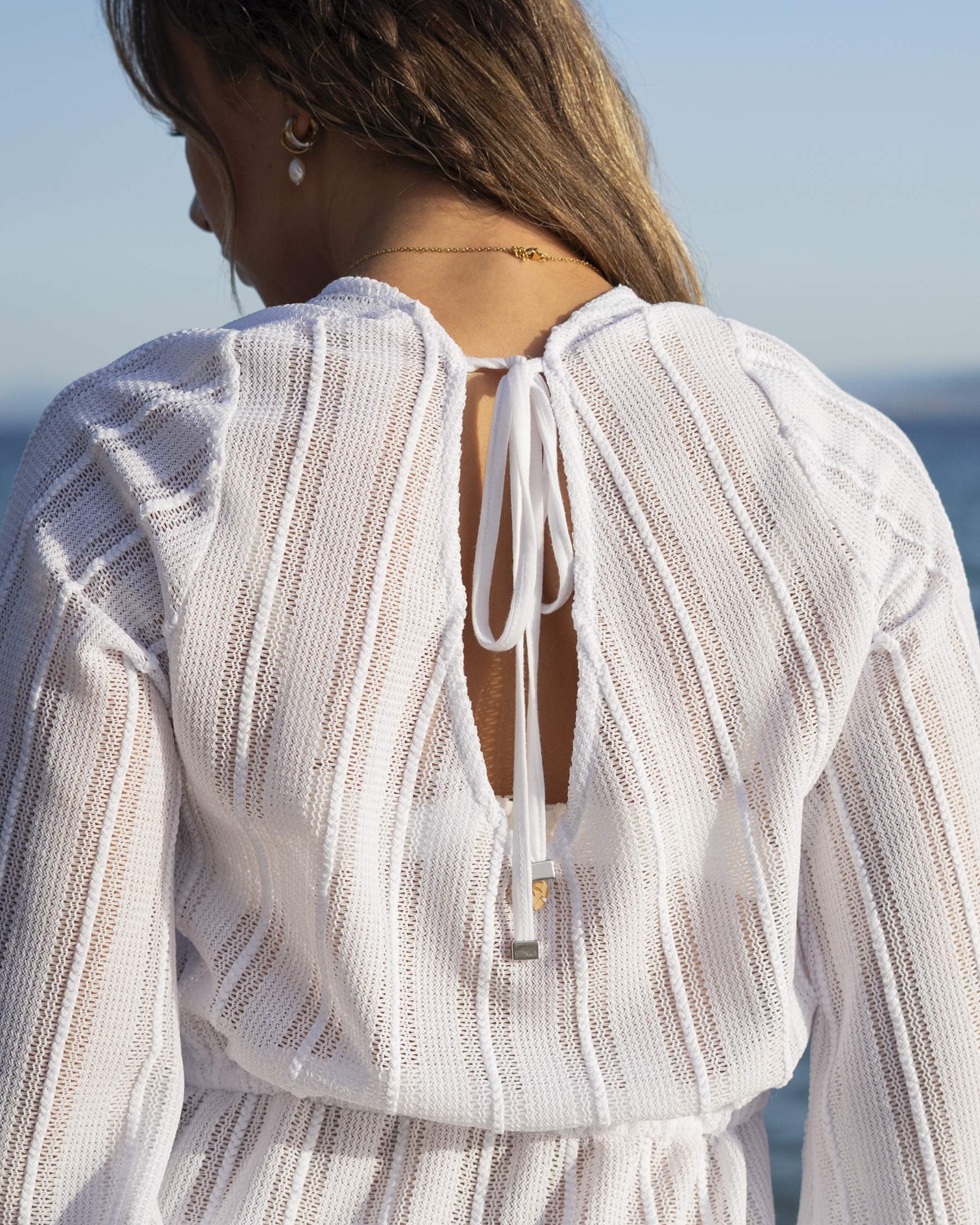 Effortless beach vibes! This long-sleeve crochet tunic is airy, lightweight, and perfect for tossing over a swimsuit. Whether you're strolling the shore or grabbing drinks, it's a go-to for laid-back style.
