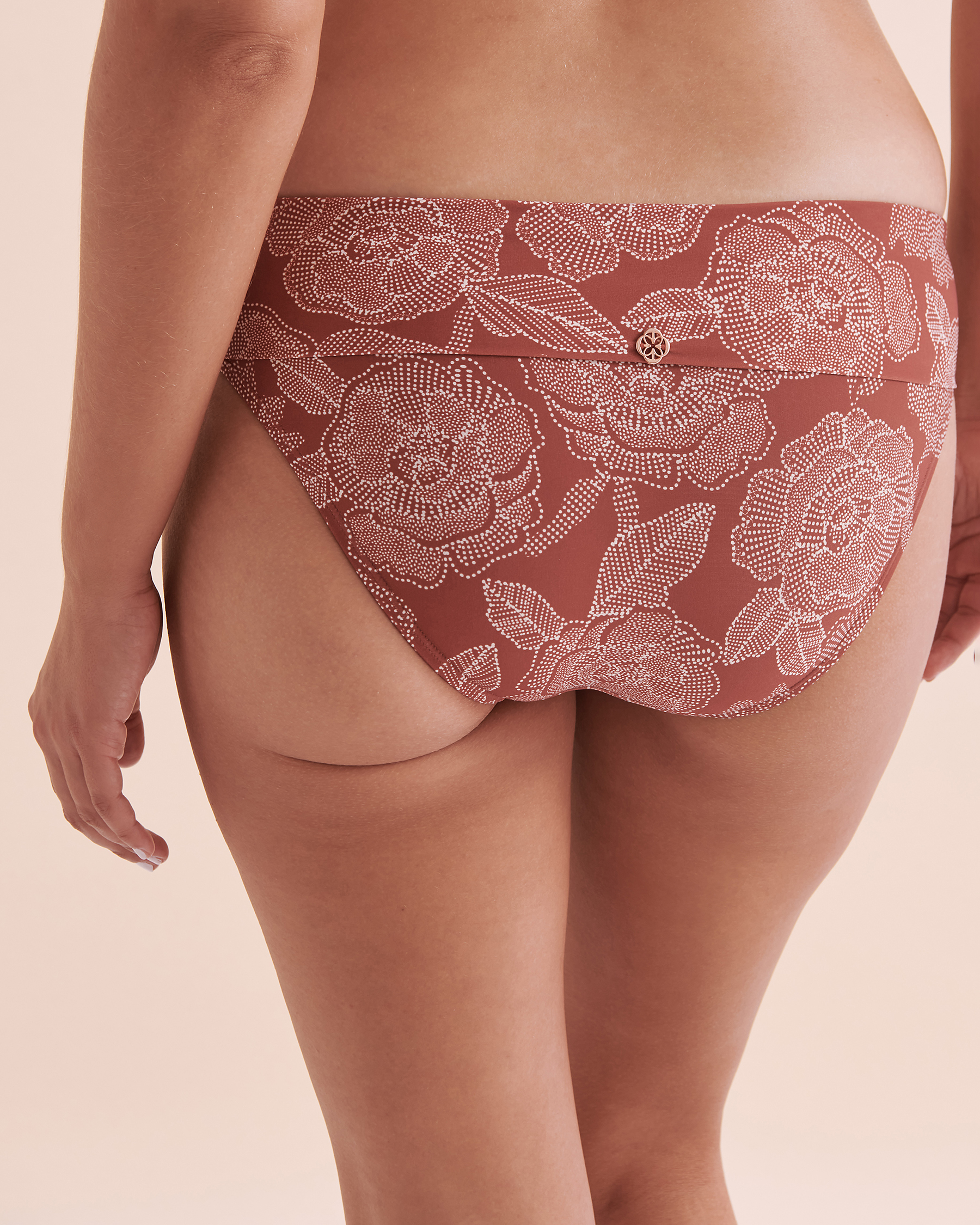 Start off your vacation in style with Turquoise Couture's Low Bikini Marsala Group Bottom. This floral swimsuit has a folded waistband with a tortoise ring on its side. Its full back coverage and low waist create the perfect look. Match this bottom with Turquoise Couture's Push Up Marsala bikini top.