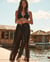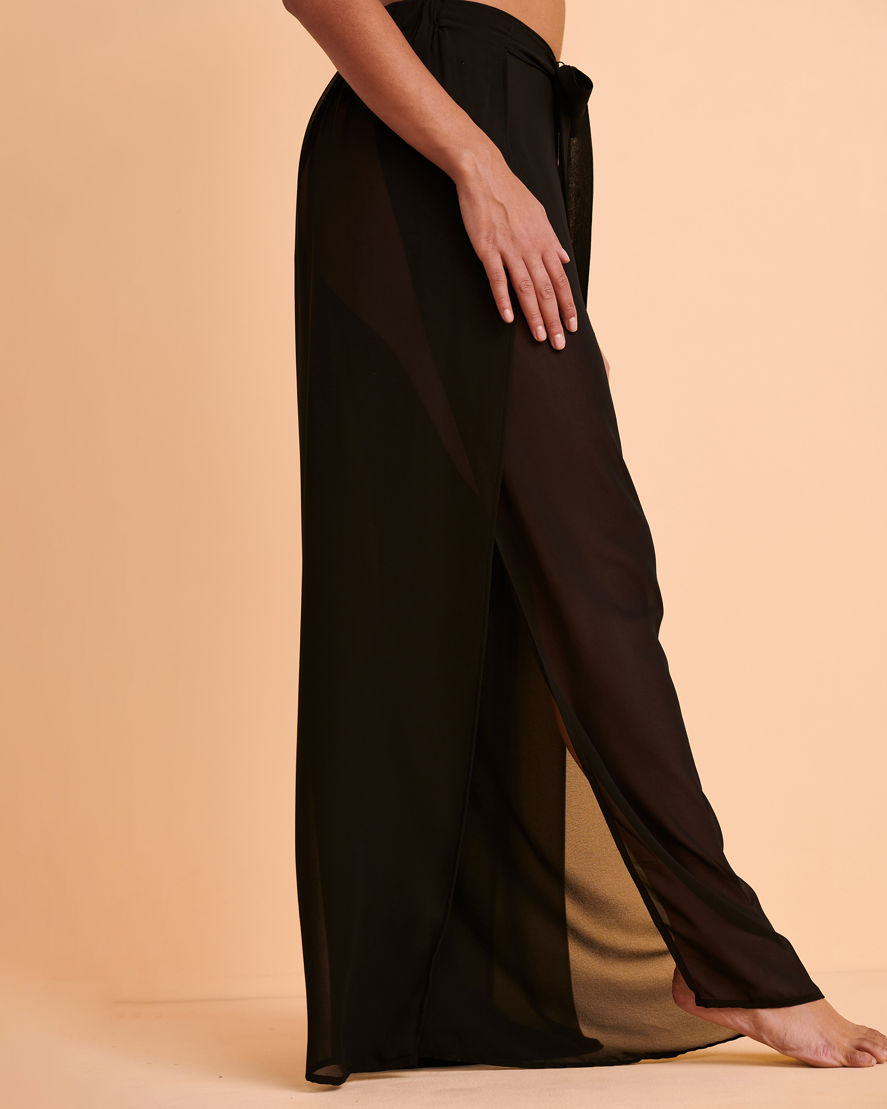 Santemare has the perfect black chiffon pants for you. These slightly sheer pants are perfect to throw on over a bathing suit. These pants have a double slit and a front tie style. Add these pants to your suitcase for an added touch of sophistication and style.