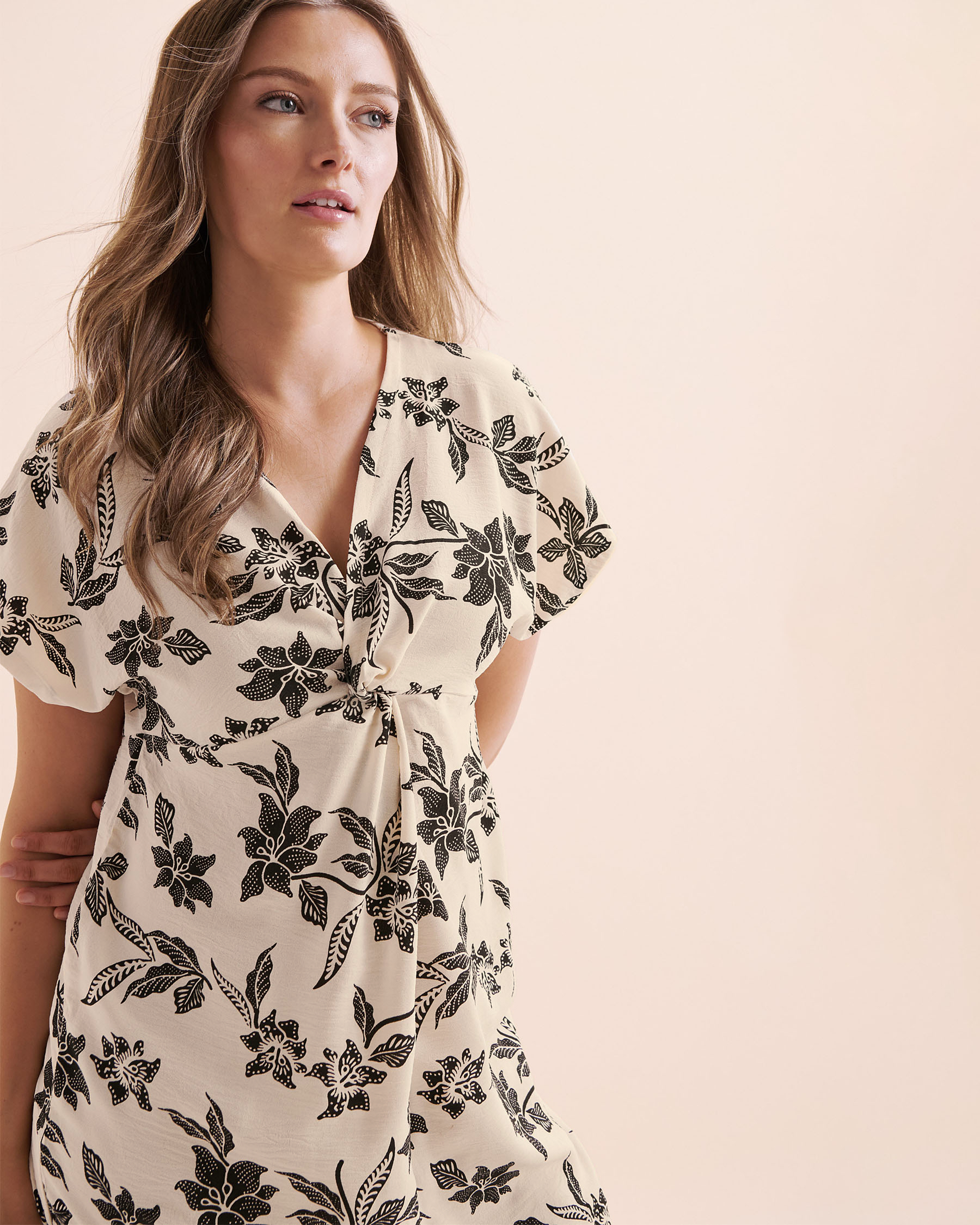 The Sahara Airflo short dress, a must-have for sunny days. Made from a lightweight airflo fabric, this short-sleeve dress wraps you in unmatched softness. Its delicate V-neck and black botanical print add a touch of sophistication to this timeless piece. Whether for a night out with friends or a city getaway, this dress becomes your perfect ally.