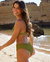 Dive into the water with Tropiks' Smocked Textured Cheeky Bikini Bottom. This olive green swimsuit has a mid rise cut and a cheeky bum coverage. Its waist line is defined by a lining.