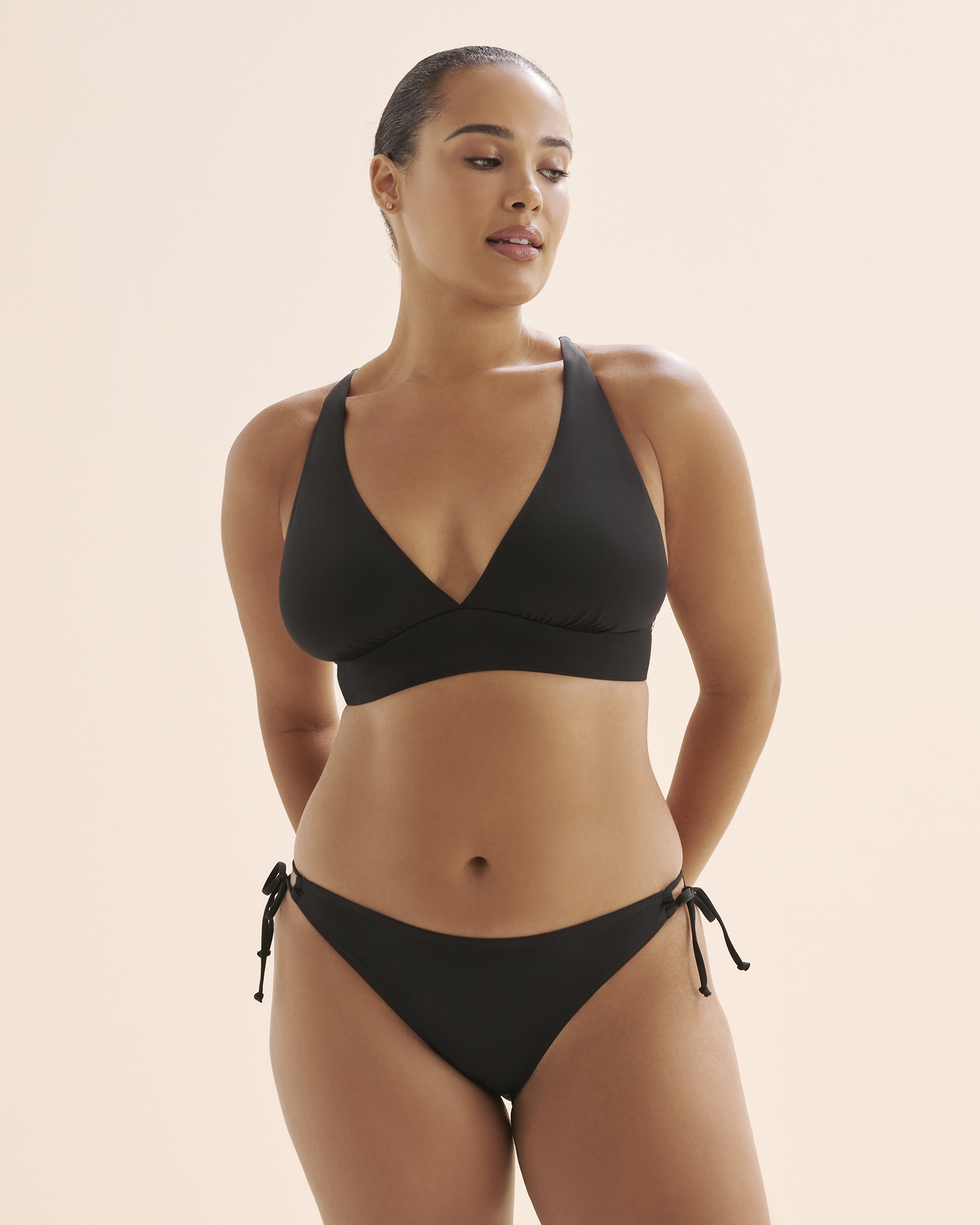 This black triangle bikini top reinvents a timeless classic with the understated elegance and modern flair that define Turquoise Couture. Fully lined, this black essential is made to slip into every suitcase and pairs effortlessly with the bottom of your choice for a beach look that’s both confident and refined.